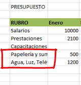 Si observamos nuestro presupuesto, hay dos rubros que no pueden leerse completamente en la columna que se encuentran porque el espacio no es suficiente por lo que la información aparece recortada en la columna a su derecha.