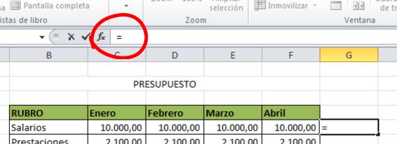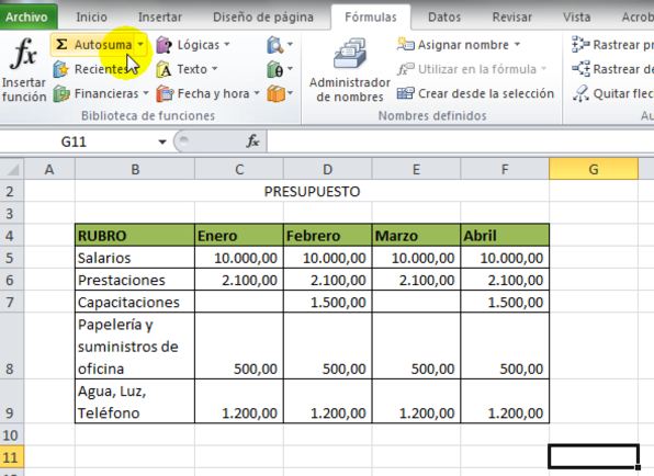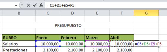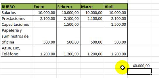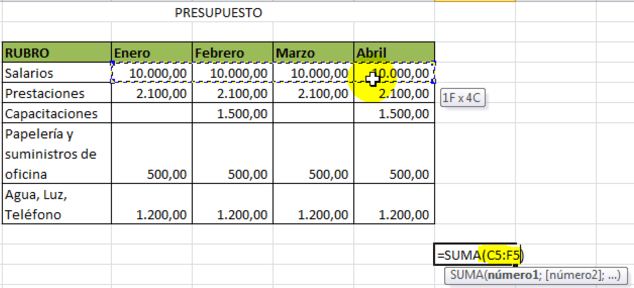 Como queremos sumar lo presupuestado en enero, febrero, marzo y abril, marcaremos estascuatro celdas.