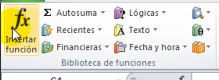 Tenemos dos formas de hacerlo: la primera es buscando esta opción entre las más usada o sugerida por el programa. Nos ubicamos en la celda en la Pestaña Insertar. Nos posicionamos en la celda donde queremos el resultado, y pulsamos el ícono Insertar Función de la barra de herramientas.