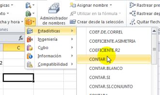 Seleccionamos la función Contar del paquete de funciones Estadísticas, ya que esta función pertenece a esta categoría.
