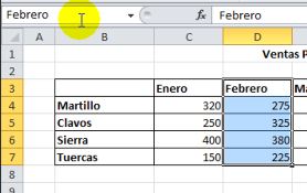 En el Cuadro de nombres, justo al lado de la barra de fórmulas, escribimos el nombre que pondremos al rango. Escribimos Febrero. Pulsamos Enter en el teclado y ya tendremos nombrado el rango de datos