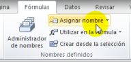 Otra forma de realizar esta función es a partir de la barra de herramientas. Nos ubicamos en la pestaña Fórmulas de la barra de herramientas y seleccionamos el ícono Asignar nombre a un rango