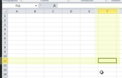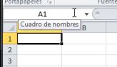 Veremos que al seleccionar una celda nos aparecerá en la Barra de funciones y en el campoCuadro de nombres, la definición de la celda elegida. En este caso hemos elegido la columna A y la Fila 1, por lo que la Celda corresponde a A1