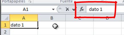 Si ahora escribimos algo en esta, nos aparecerá tanto en la celda como en el campo de la Barra de fórmulas.