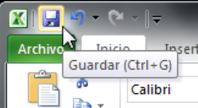 Tal como vimos en la Lección anterior, podremos Guardar lo que vayamos incorporando yendo a la Pestaña Archivo y pulsar Guardar, o recurriendo a la Barra de acceso rápido donde encontraremos el botón representado por el ícono correspondiente